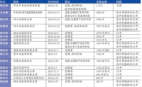鏈接:2015年全國(guó)法院共審結(jié)原副部級(jí)以上的國(guó)家工作人員犯罪案件16起16人.